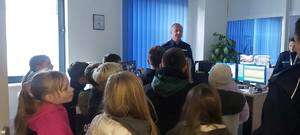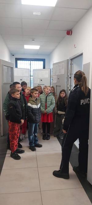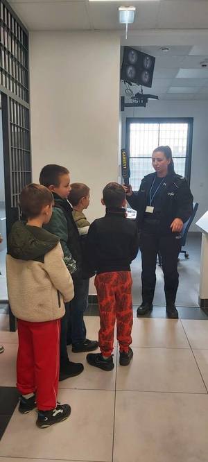 Podczas wizyty dzieci miały okazję zapoznać się z codzienną służbą policjantów oraz funkcjonowaniem jednostki. Uczniowie obejrzeli sprzęt wykorzystywany przez funkcjonariuszy w codziennej pracy, a szczególną atrakcją była możliwość obejrzenia policyjnego radiowozu i przez chwilę poczucia się jak prawdziwy policjant.
