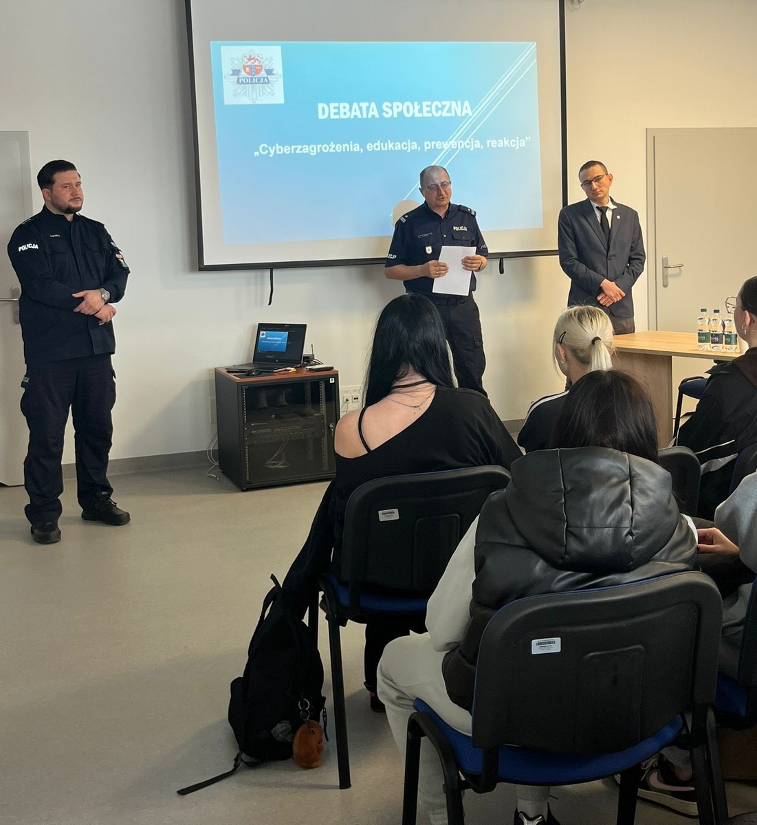 W dniu dzisiejszym w Komendzie Powiatowej Policji w Pyrzycach odbyła się debata społeczna pod nazwą „Cyberzagrożenia, edukacja, prewencja, reakcja”. Spotkanie skierowane było do młodzieży oraz pedagogów z terenu Powiatu Pyrzyckiego. Celem debaty było zwrócenie uwagi na problem cyberprzestępczości, który stanowi obecnie jedno z istotnych wyzwań dla służb oraz społeczeństwa. Sprawcy coraz częściej przenoszą swoją działalność do przestrzeni wirtualnej, dlatego tak ważne jest budowanie świadomości i umiejętności bezpiecznego korzystania z Internetu.