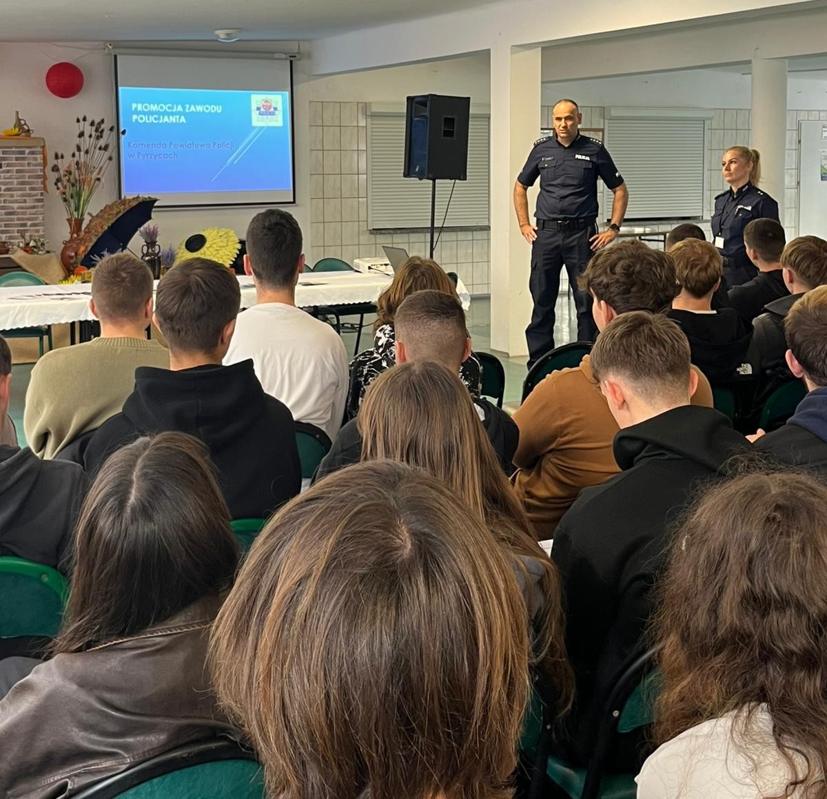 Policjanci z Pyrzyc zachęcają maturzystów do wstąpienia w szeregi Policji
