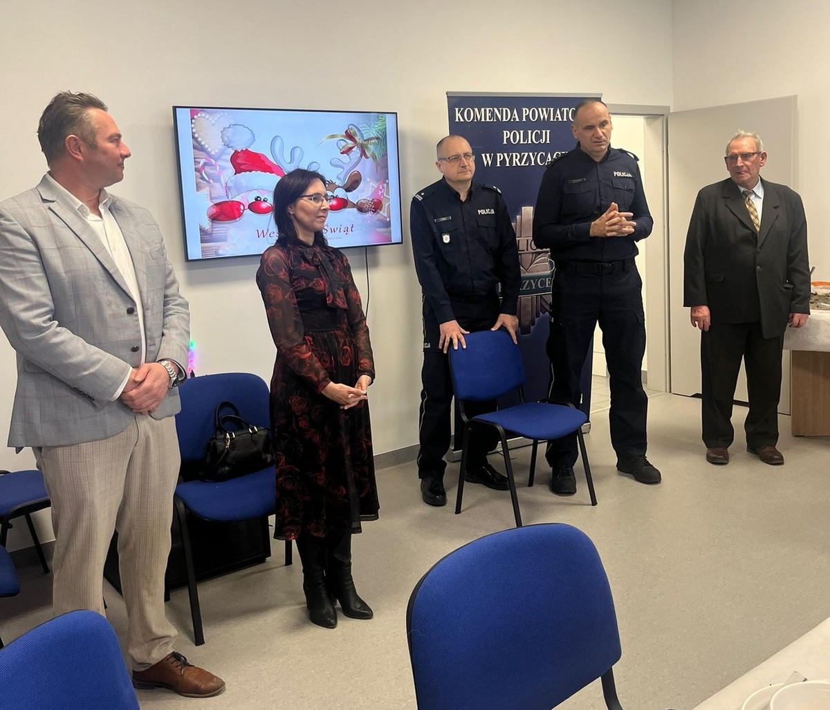 Był to czas wspólnych rozmów, składania życzeń oraz refleksji nad mijającym rokiem. Spotkanie stworzyło okazję do integracji środowiska policyjnego oraz podkreślenia znaczenia wzajemnej współpracy i wsparcia. Ciepła, rodzinna atmosfera sprzyjała budowaniu więzi i umacnianiu relacji, które są ważnym elementem codziennej służby i pracy na rzecz bezpieczeństwa mieszkańców powiatu pyrzyckiego.